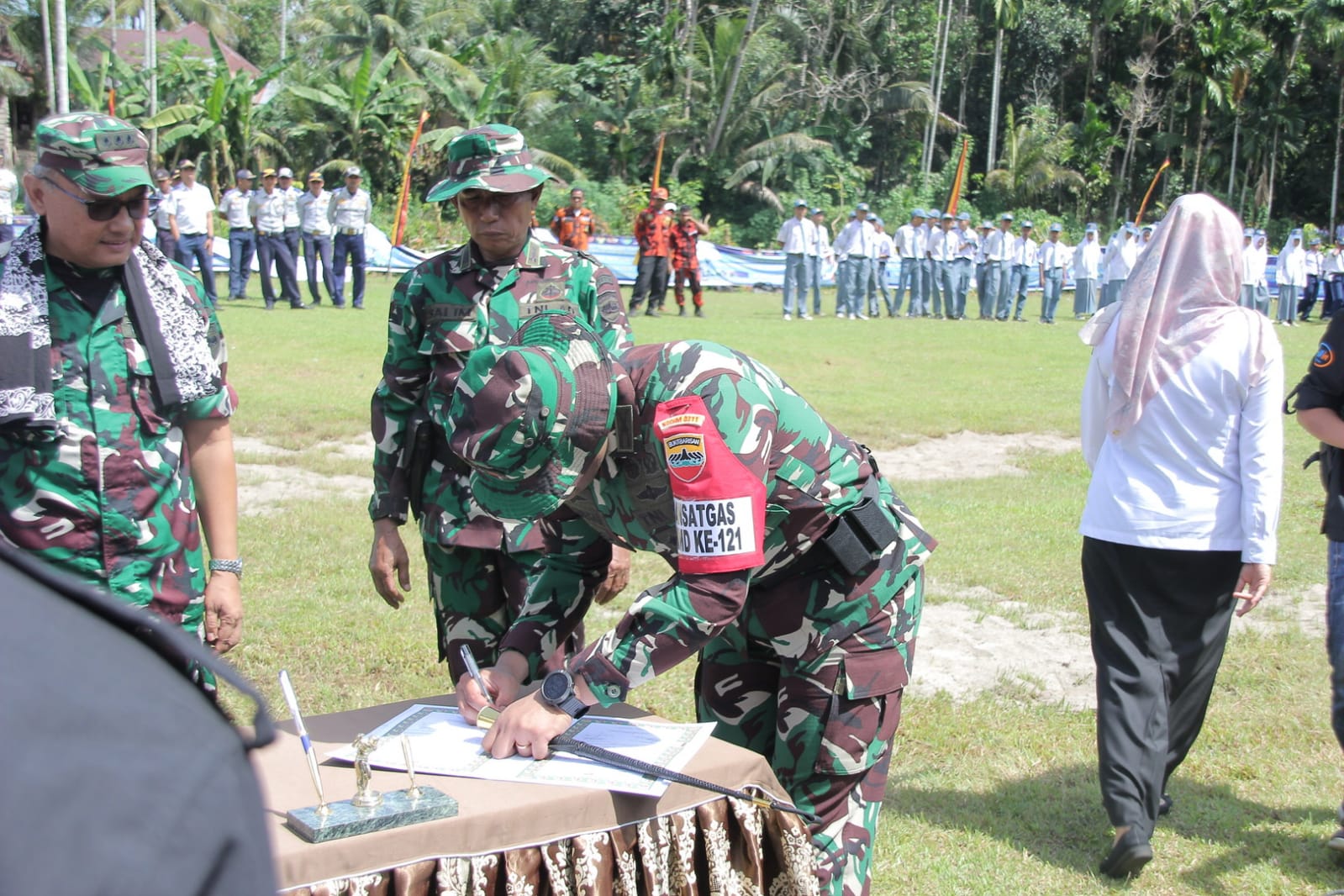 Pembukaan TMMD ke-121 di tandai dengan pemukulan gong serta Penanda tanganan berita acara oleh Dansatgas TMMD ke- 121 Dandim 0311/Pessel, Letkol Inf Heri Sireger.
