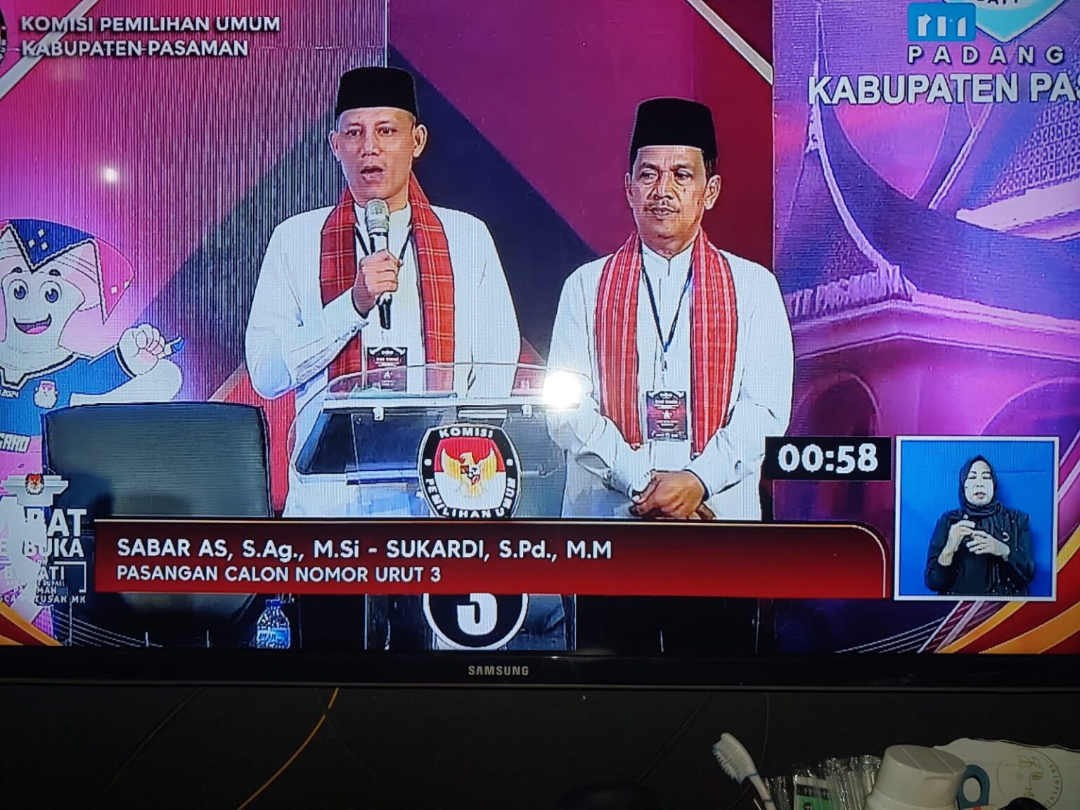 Dalam kesempatan itu, Sabar didampingi calon wakilnya, Sukardi. Juga tampil dua pasang calon lainnya, yaitu Welly Suheri dan Parulian serta Mara Ondak dan Desrizal