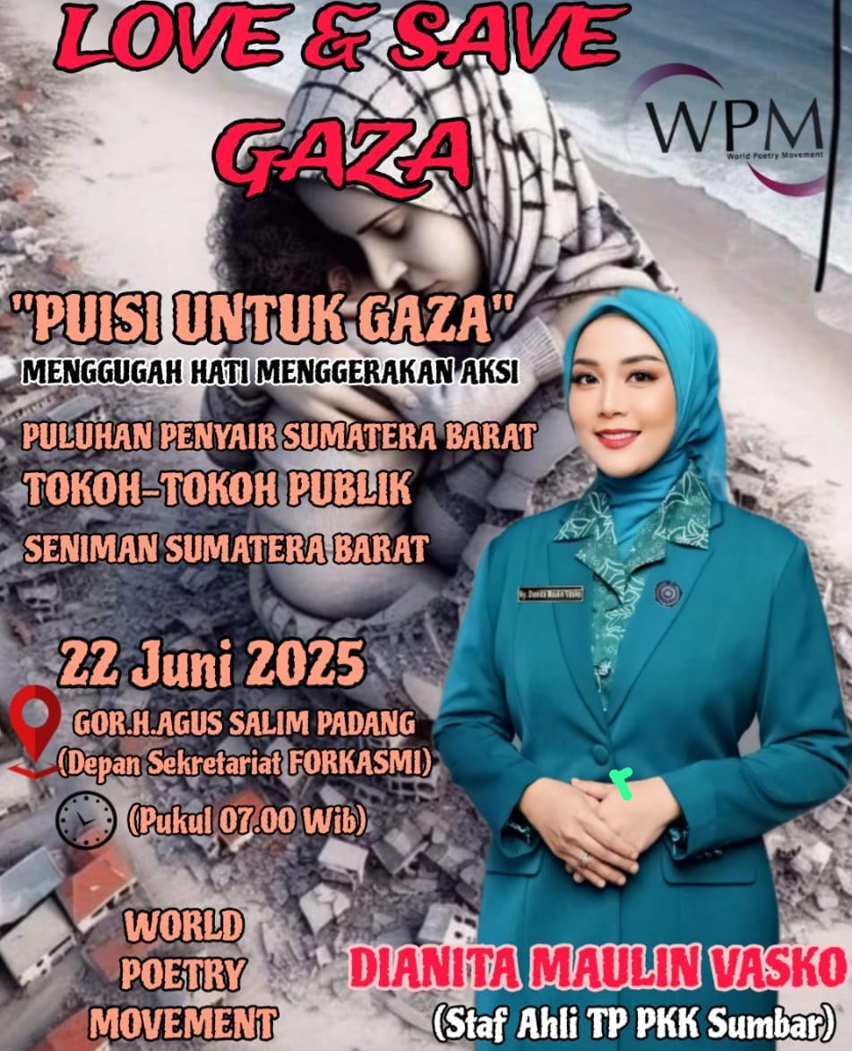 “Grup Nasyid Alfajr, Sumbar Talenta, Barabah Group, serta pembaca puisi ternama Sumbar seperti Andrea C. Tamsin, Yeny Ibrahim, Zamzami Ismail, Leni Marlina, dan para penyair muda turut menunjukkan kepedulian terhadap Gaza melalui puisi,” pungkasnya saat meninjau lokasi acara. (***)