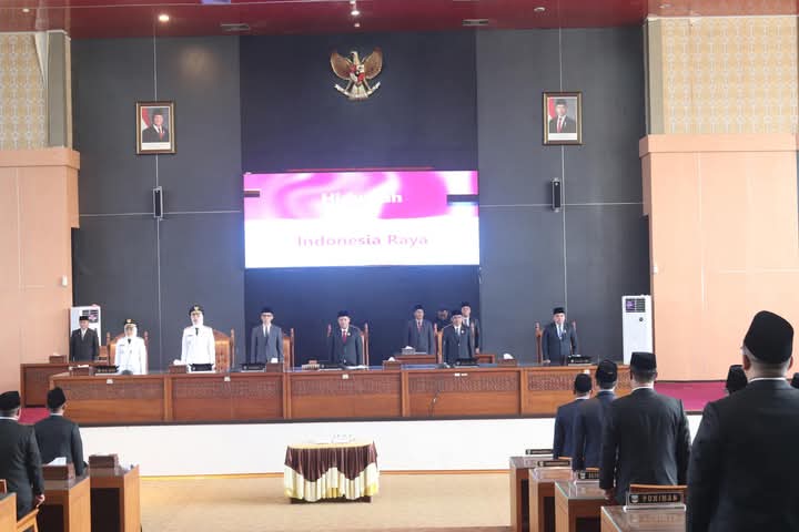 Rapat paripurna yang dipimpin oleh Ketua DPRD Kabupaten Dharmasraya Jemi Hendra serta didampingi oleh Wakil Ketua DPRD Sujito dan Ade Sudarman, turut dihadiri oleh Gubernur Sumatera Barat yang diwakili oleh Kepala Biro Pemerintahan dan Otda, selanjutnya hadir Sutan Riska Tuanku Kerajaan selaku Bupati Dharmasraya 2 periode (2016-2025), Forkopimda, instansi vertikal, OPD dan tamu undangan lainnya.