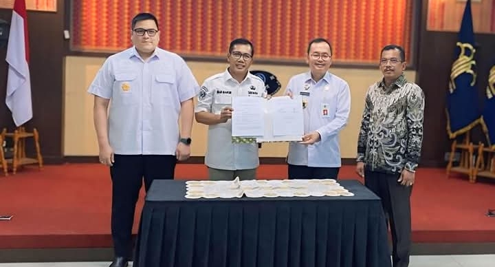 Penandatanganan perjanjian kerja sama dihadiri Pimpinan DPRD Kabupaten Dharmasraya, Sujito, Ketua Bapemperda serta Sekretariat DPRD Imam Mahfuri dan jajaran.