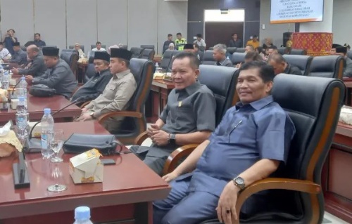 Rapat Paripurna ini dipimpin langsung oleh Ketua DPRD Kota Padang, Muharlion, didampingi Wakil Ketua Mastilizal Aye dan Osman Ayub. Ketiganya tampak serius mengawal jalannya pembacaan pendapat akhir fraksi-fraksi dan sambutan dari pihak eksekutif.