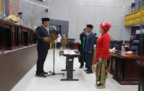 Prosesi pelantikan dan pengucapan sumpah tersebut dipandu oleh Ketua DPRD Kota Padang dan rohaniawan.