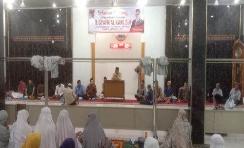 Wakil Ketua DPRD Kota Padang Amril Amin bersilaturahmi dan menyerap aspirasi masyarakat melalui reses di depan Masjid Al Mukhlisin yang terletak di Perum Villa Mega RW 12 RT 02 Kel. Mata Air Kec. Padang Selatan pada Kamis, 4 Januari 2024 yang diikuti 350 orang warga.