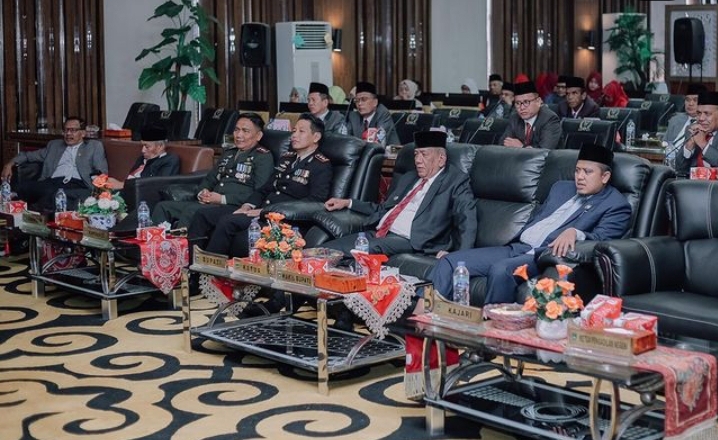 Bupati Rusma Yul Anwar bersama Forkopimda kemudian mendengarkan pidato kenegaraan Presiden Joko Widodo (Jokowi). Pidato disampaikan pada Sidang Tahunan MPR RI dan Sidang Bersama DPR RI dan DPD RI dalam rangka HUT Ke-78 Proklamasi Kemerdekaan RI, di Ruang Rapat Paripurna, Gedung Nusantara MPR/DPR/DPD RI, Senayan, Jakarta.