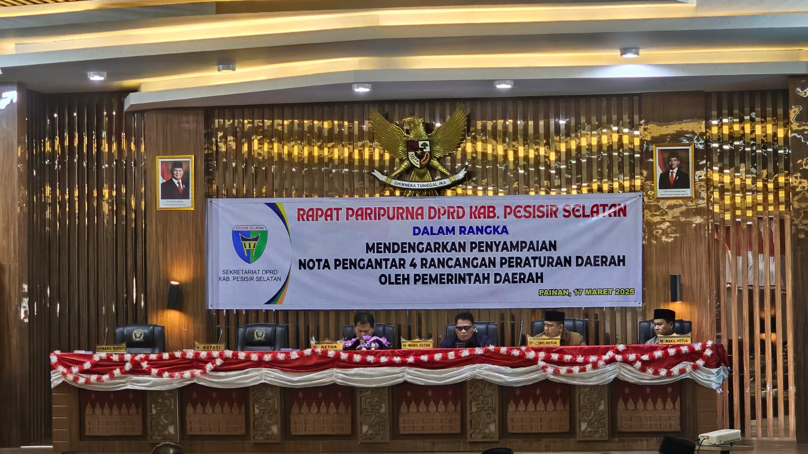 Rapat ini berlangsung di Ruang Rapat Paripurna DPRD Kabupaten Pesisir Selatan dan dihadiri oleh para anggota dewan serta perwakilan dari Pemerintah Daerah.