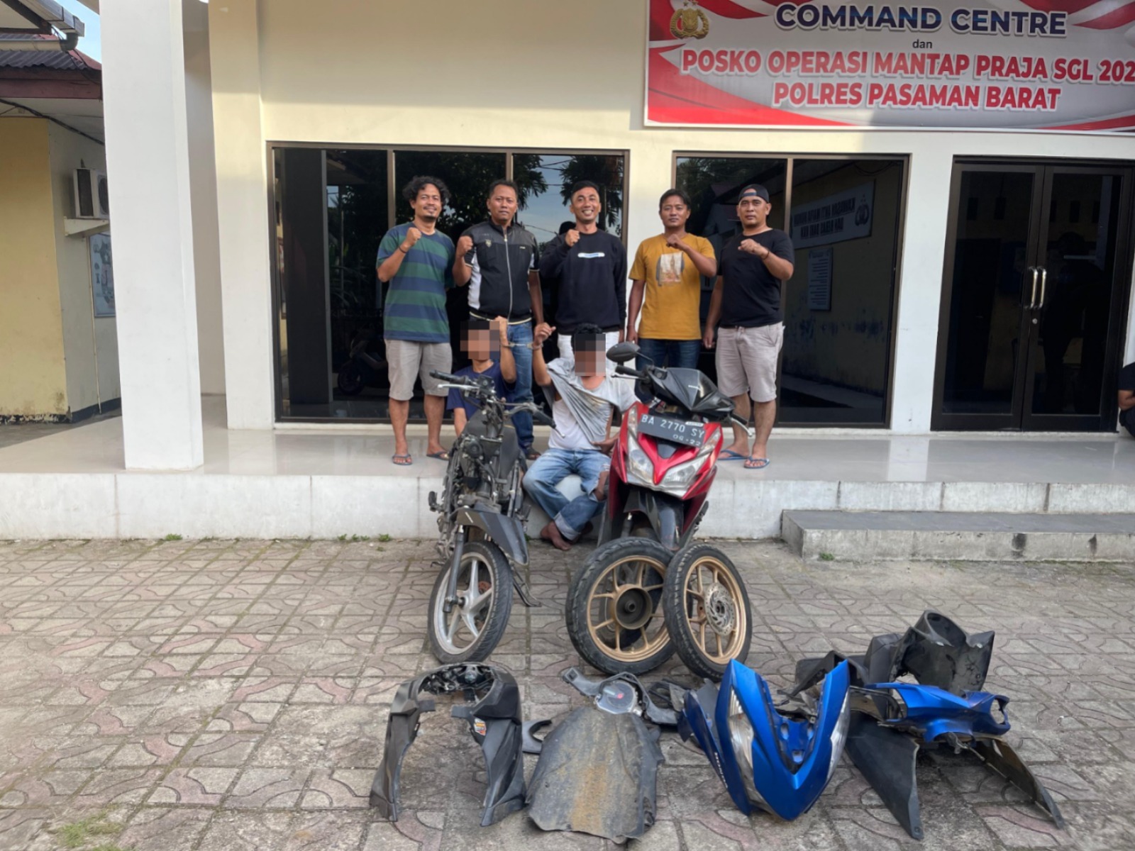 Dijelaskan, setelah keduanya dipertemukan oleh petugas, para pelaku mengakui perbuatannya. Selain itu, petugas menyita barang bukti berupa satu unit sepeda motor merk Honda Beat dengan Nomor Polisi BA 6437 RB beserta satu unit sepeda motor merk Honda Vario Nomor Polisi BA 2770 SY yang digunakan oleh kedua pelaku dalam melakukan aksinya.
