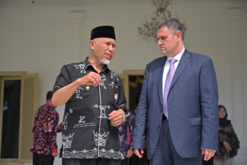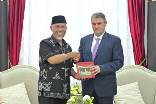 MINANGKABAUNEWS.com, PARIWARA PEMPROV SUMBAR – Gubernur Sumatera Barat (Sumbar), Mahyeldi Ansharullah, menerima kunjungan Duta Besar (Dubes) Romania untuk Indonesia, H.E. Mr. Dan Adrian Bălănescu, di Istana Gubernur Sumbar pada Kamis (30/1/2025). Pertemuan ini membahas peluang kerjasama di sejumlah sektor potensial, termasuk pendidikan, kesehatan, pariwisata, dan budaya.