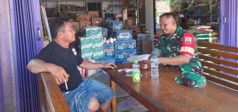 Pedagang yang disambangi Babinsa yakni Beni Gulo yang beralamat di Desa Muara yang aktif melakukan kegiatan rutin yaitu berdagang.