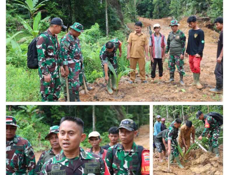 MINANGKABAUNEWS.COM, MENTAWAI – Dansatgas TMMD Ke – 123 Kodim 0319/Mentawai Letkol Inf Restu Petrus Simbolon, lakukan penanaman pohon Kelapa dilokasi pembukaan jalan lingkar Desa Bukit Pamewa bersama warga setempat.