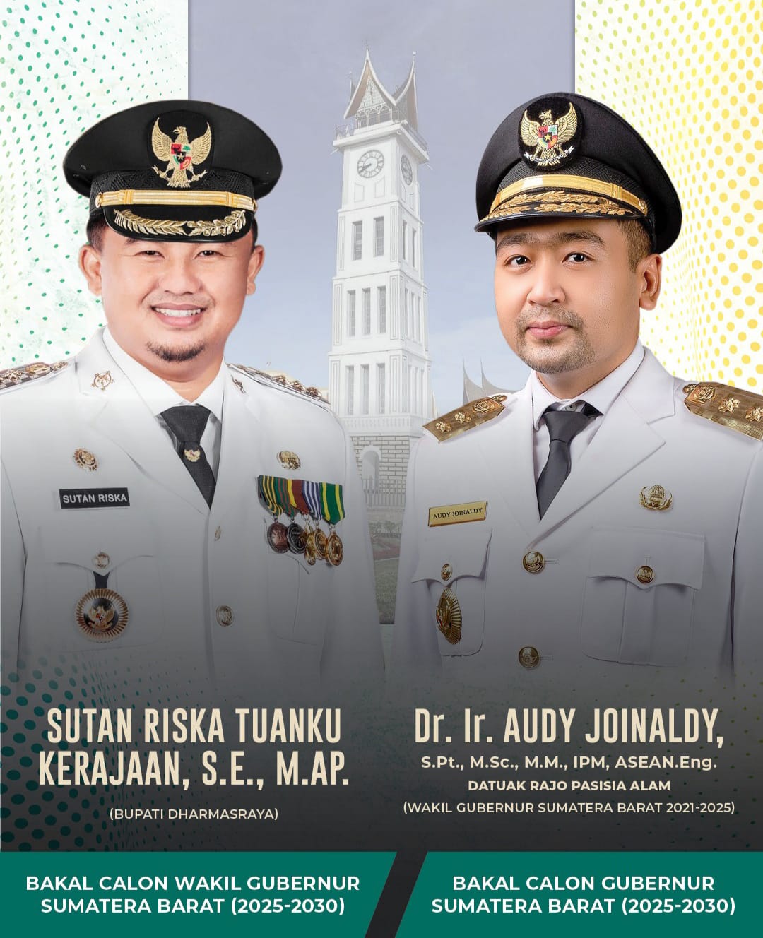 Pemilihan Gubernur (Pilgub) pada Pemlihan Kepala Daerah (Pilkada) 2024 semakin seru dengan duet nya pasangan Dr. Audy Joinaldy, S.Pt., M.Sc., IPM, ASEAN.,Eng., Datuak Rajo Pasisia bersama Sutan Riska Tuanku Kerajaan.
