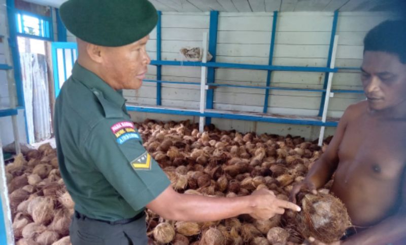 Mitra Karib yang disambangi Babinsa Pengepul Kelapa bulat Pak Rudi Pengepul kelapa di Dusun Baddsudut Desa Muaro Siberut Selatan. Jumat (23/05/2025)