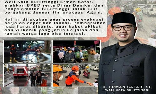 Wali Kota Bukittinggi Erman Safar, arahkan BPBD serta Dinas Damkar dan Penyelamatan Bukittinggi untuk ikut bergabung dengan tim evakuasi Kabupaten Agam.