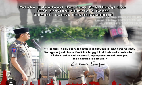 “Berantas seluruh bentuk penyakit masyarakat. Jangan jadikan Bukittinggi ini lokasi maksiat. Tidak ada toleransi, apapun modusnya berantas,” tutup Erman Safar. (IKP Diskominfo).