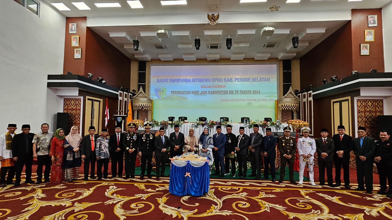 PESISIR SELATAN, MINANGKABAUNEWS – Rapat paripurna istimewa Dewan Perwakilan Rakyat Daerah (DPRD) Kabupaten Pesisir Selatan tahun ini digelar di Gedung PCC Kabupaten Pesisir Selatan Sumatera Barat, Senin, (22/04/2024).