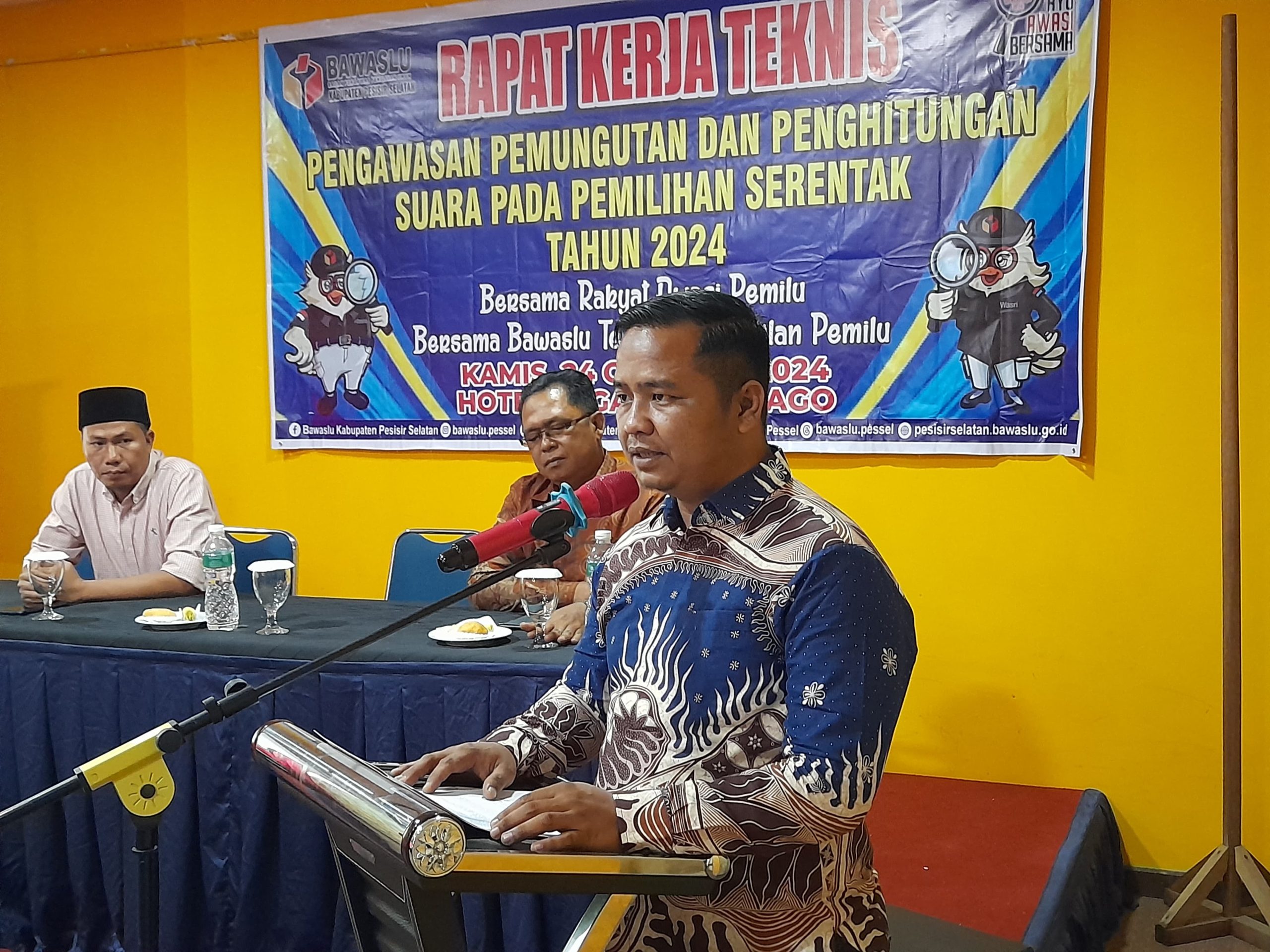 PESISIR SELATAN — Bawaslu Kabupaten Pesisir Selatan adakan rapat kerja teknis pengawasan pemungutan suara pada pemilihan serentak tahun 2024 di Hotel Saga Murni Sago, Kabupaten Pesisir Selatan.