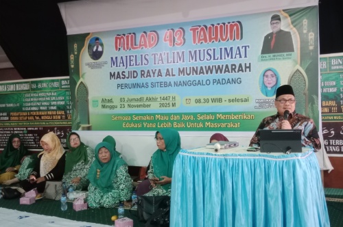 Dalam acara milad ke-43 Majelis Taklim Muslimat Masjid Raya Almunawwarah, Ahad (23/11), Muhidi menyampaikan ceramah yang menyentuh akar peradaban. Dengan penuh semangat, ia mengajak jamaah untuk meneladani sirah Nabi Muhammad SAW, yang justru memilih membangun Masjid Quba dan Masjid Nabawi sebagai fondasi pertama negara Madinah.