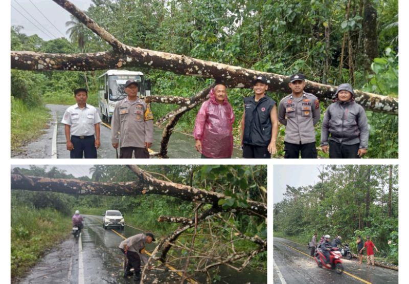 “Kami telah menerima laporan tentang pohon tumbang di perbatasan Desa Rokot dan Desa Matobe. Kami langsung membersihkan pohon tumbang tersebut untuk membuka akses jalan,” ujar AKP Herlina.