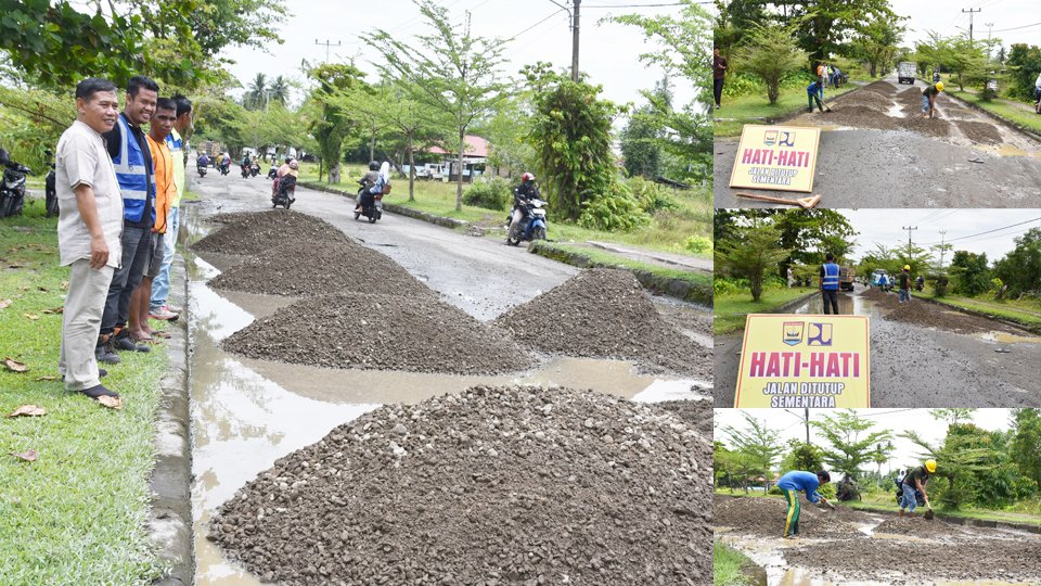 “Sesuai arahan pak wali, untuk saat ini, bagaimana jalan yang sering dilewati oleh masyarakat dan wisatawan ini dapat dilalui terlebih dahulu, dalam upaya untuk kelancaran pengguna jalan dan menghindari kecelakaan bagi kendaraan yang melintas, dikarenakan jalan yang berlobang dan tergenang air,” ungkapnya.