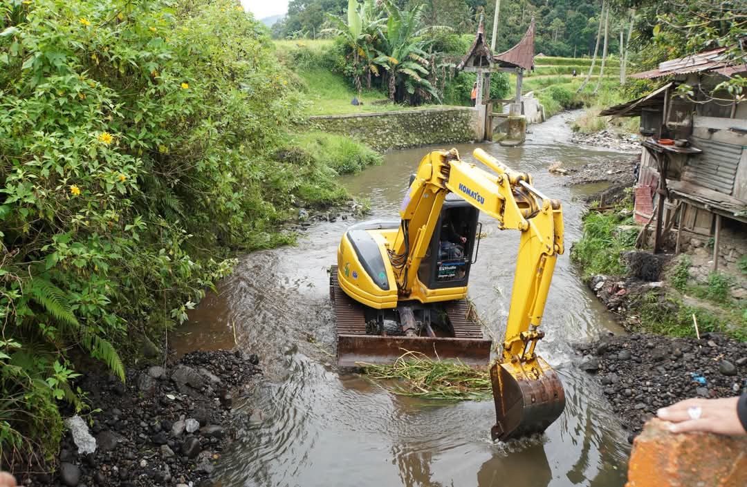 Sungai yang sebelumnya tampak dangkal akibat sedimentasi dan dipenuhi semak-semak di bagian tepinya, kini berubah menjadi lebih bersih dan tertata. Pengerukan sedimen dilakukan guna melancarkan aliran air serta mengantisipasi banjir yang kerap terjadi di musim hujan.