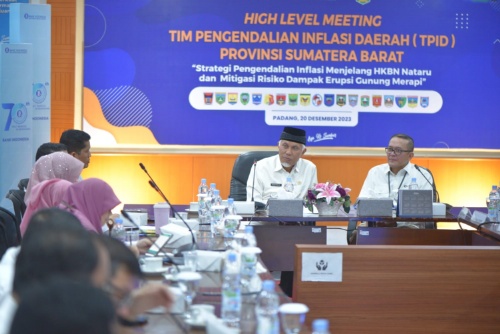 Hal itu disampaikan Gubernur Mahyeldi saat membuka High Level Meeting (HLM) Tim Pengendalian Inflasi Daerah (TPID) Provinsi Sumbar di Aula Kantor Perwakilan Bank Indonesia (BI) Sumbar, Rabu (20/12/2023). Pertemuan tersebut dihadiri oleh perwakilan kepala daerah kabupaten/kota, para kepala OPD, serta instansi dan lembaga terkait lainnya.