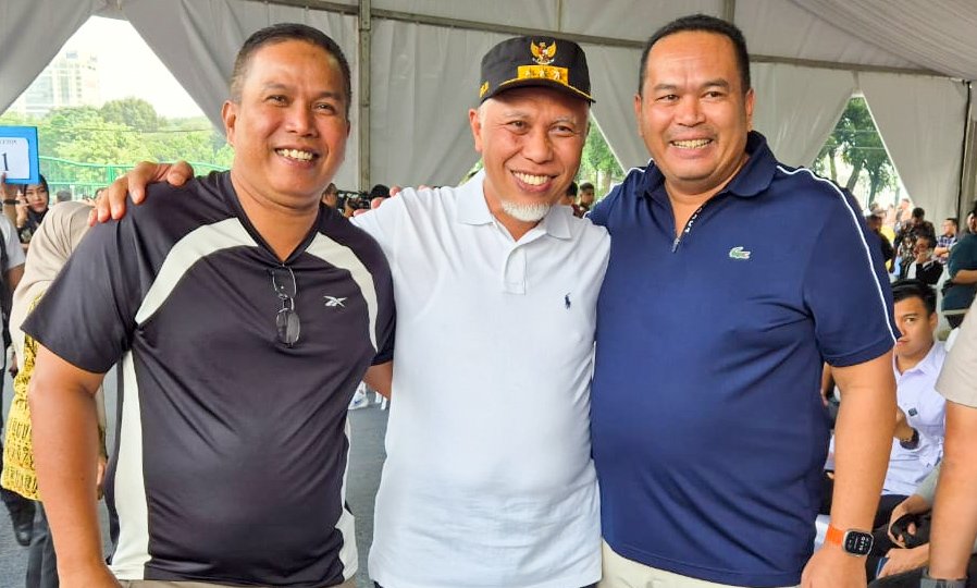 Dengan penuh ke akraban, Yota Balad dan Mulyadi dipeluk hangat oleh Gubernur Sumbar Mahyeldi Sumbar, yang juga terpilih kembali sebagai Gubernur Sumbar untuk periode 2025-2030 berpasangan dengan Vasko Ruseimy.
