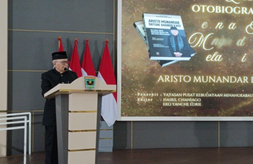 MINANGKABAUNEWS.com, PADANG – Gubernur Sumatera Barat Mahyeldi Ansharullah menegaskan, H. Aristo Munandar merupakan sosok inspiratif yang jejak hidupnya patut menjadi panutan. Pernyataan itu disampaikannya dalam peluncuran dan bedah buku otobiografi Aristo bertajuk “Setengah Abad Mengabdi untuk Negeri dan Melayani Masyarakat”, di Auditorium Gubernuran Sumbar, Jumat (17/10/2025).
