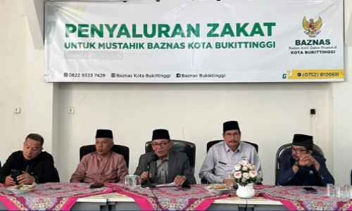 Hal tersebut disampaikan oleh Staf Ahli Bidang Administrasi dan Keuangan Wali Kota Bukittinggi Melfi Abra, saat menghadiri pendistribusian zakat mustahik kepada 128 penerima di Kantor Baznas Kota Bukittinggi, Jumat (26/9/2025).