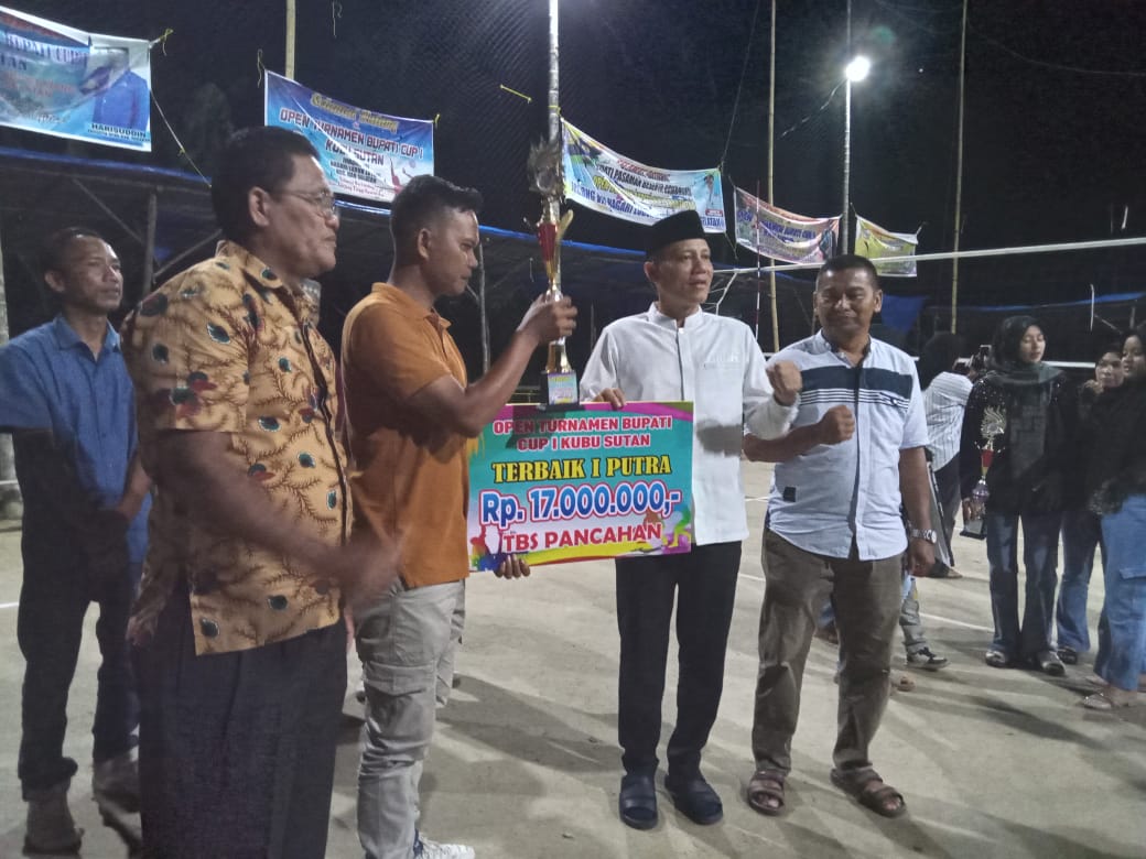 Juara I Putra diterima oleh Clup Volly Ball Tandan Buah Segar (TBS) Pancahan Baru, secara simbolis Sabar AS memberikan hadiah uang sebanyak Rp 17 juta dan Piala tetap.