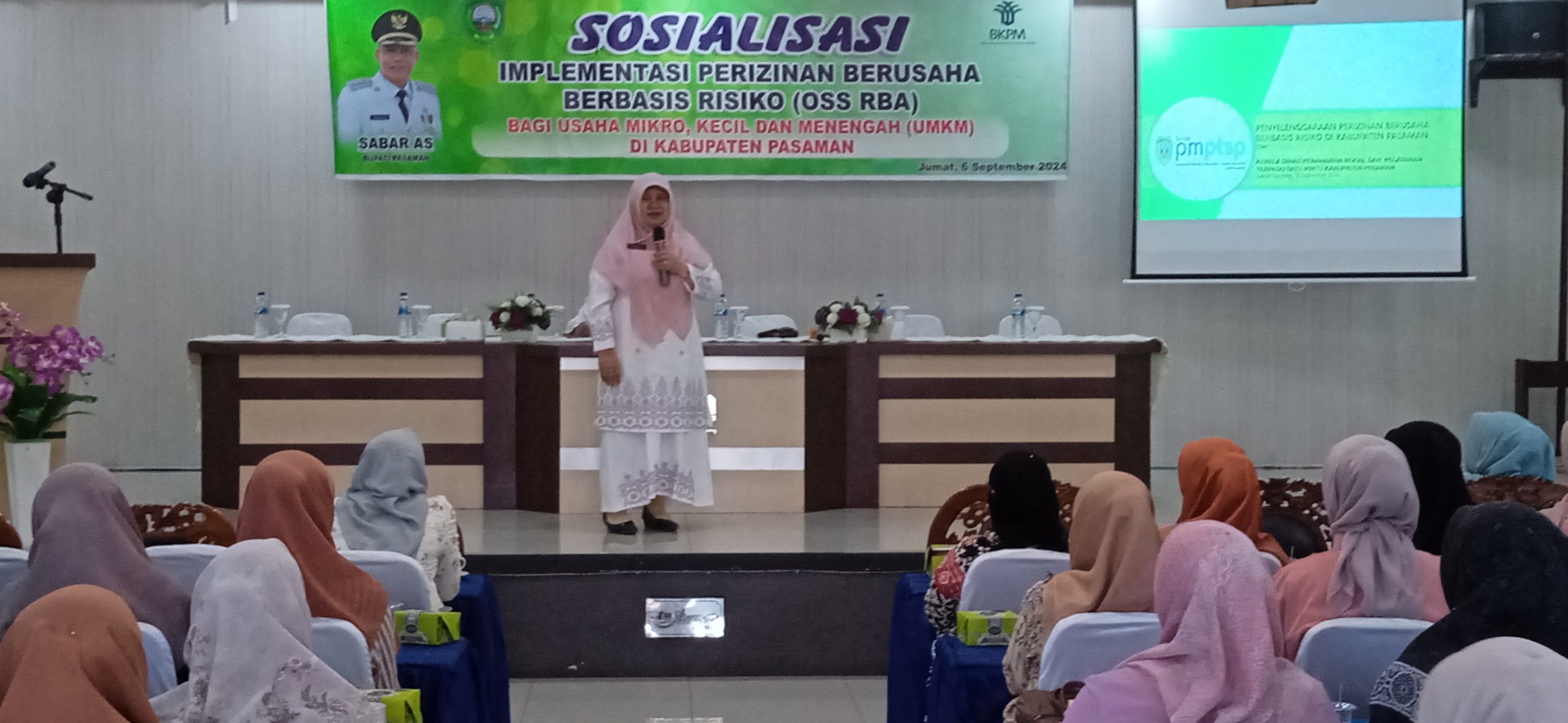 Pasaman, Minangkabaunews.com – Dalam rangka peningkatan kualitas pelayanan perizinan berusaha Dinas Penanaman Modal dan Pelayanan Terpadu Satu Pintu (DPMPTSP) Kabupaten Pasaman melaksanakan Sosialisasi Implementasi Perizinan Berusaha Berbasis Risiko (OOS-RBA) di aula Hotel Arumas, Jum’at (6/9/2024).