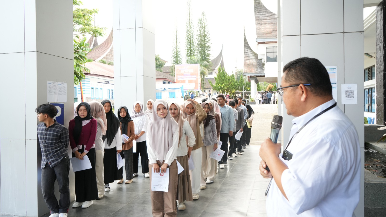 Rektor Dr. Febri Yulika menyampaikan bahwa kelancaran pelaksanaan hingga hari keenam merupakan hasil koordinasi yang baik antara panitia, tim teknis, pengawas, dan unsur keamanan yang terus bekerja maksimal menjaga kualitas penyelenggaraan ujian.