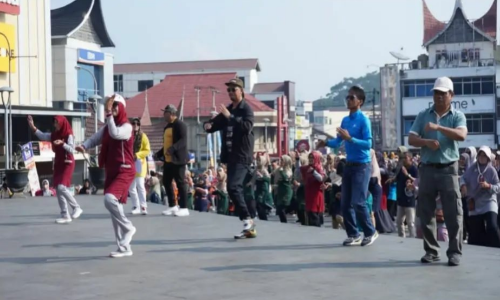 Senam bersama ini diikuti oleh Aparatur Sipil Negara (ASN) Kota Bukittinggi dari seluruh Organisasi Perangkat Daerah (OPD), dan seluruh guru PAUD, TK, SD, SMP dan SLTA se- Kota Bukittinggi. (IKP Diskominfo).