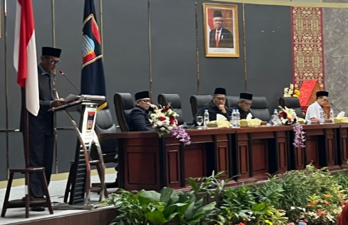 MINANGKABAUNEWS.com, PARIWARA DPRD KOTA PADANG — Dewan Pimpinan Rakyat Daerah Kota Padang menggelar rapat paripurna dengan 3 (tiga) agenda di ruang sidang utama DPRD Aia Pacah Padang, Rabu, (7/8/2024). Rapat tersebut berlangsung hingga tengah malam hari. Sidang dipimpin oleh Ketua DPRD Kota Padang, Syafrial Kani dan didampingi Wakil Ketua Arnedi Yarmen. Rapat paripurna tersebut telah memenuhi kuorum dengan dihadiri sebanyak 30 (tiga puluh) anggota dewan, Forum Komunikasi Pimpinan Daerah, dan eksekutif Pemerintah Kota Padang.