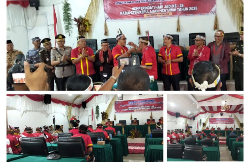 Rapat paripurna DPRD dibuka langsung oleh ketua DPRD Ibrani Sababalat bersama Pemerintah Kabupaten Kepulauan Mentawai berjalan khidmat. Moment spesial ini turut dihadiri oleh unsur Forkopimda, dan beberapa pencetus terbentuknya Kabupaten dan masyarakat lainnya berlangsung di Aula Kantor DPRD Kabupaten Kepulauan Mentawai Km 4 Tuapeijat. Saptu (04/10/2025)
