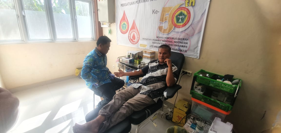 Padang Pariaman, Minangkabaunews.com– Meski tercatat sebagai pengurus Palang Merah Indonesia (PMI) di Kota Pariaman, Ketua Persatuan Wartawan Indonesia (PWI) Kab Padang Pariaman dan Kota Pariaman Jumat (14/11) melakukan donor darah di Unit Pelaksana Transfusi Darah (UPTD) RSUD Padang Pariaman di Parikmalintang, Kecamatan Enam Lingkung.
