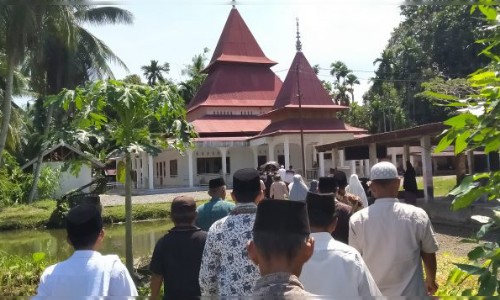 Menjelang dishalatkan di Masjid Raya Koto Baru, Akmal Tuanku Sidi, satu dari sekian anak almarhum menyampaikan kesan dan pesan untuk masyarakat dan jemaah.