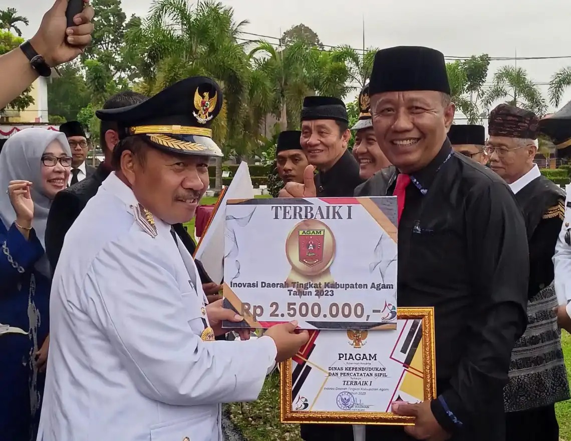 Kadis Disdukcapil Agam, Helton SH MH, mengucapkan terima kasih atas dukungan Bupati Agam, Dr. H. Andri Warman dan Sekda Agam, Drs H Edi Busti M Si, kepala OPD, unsur Forkopimda Agam dan berbagai pihak lainnya, Rabu (24/4).