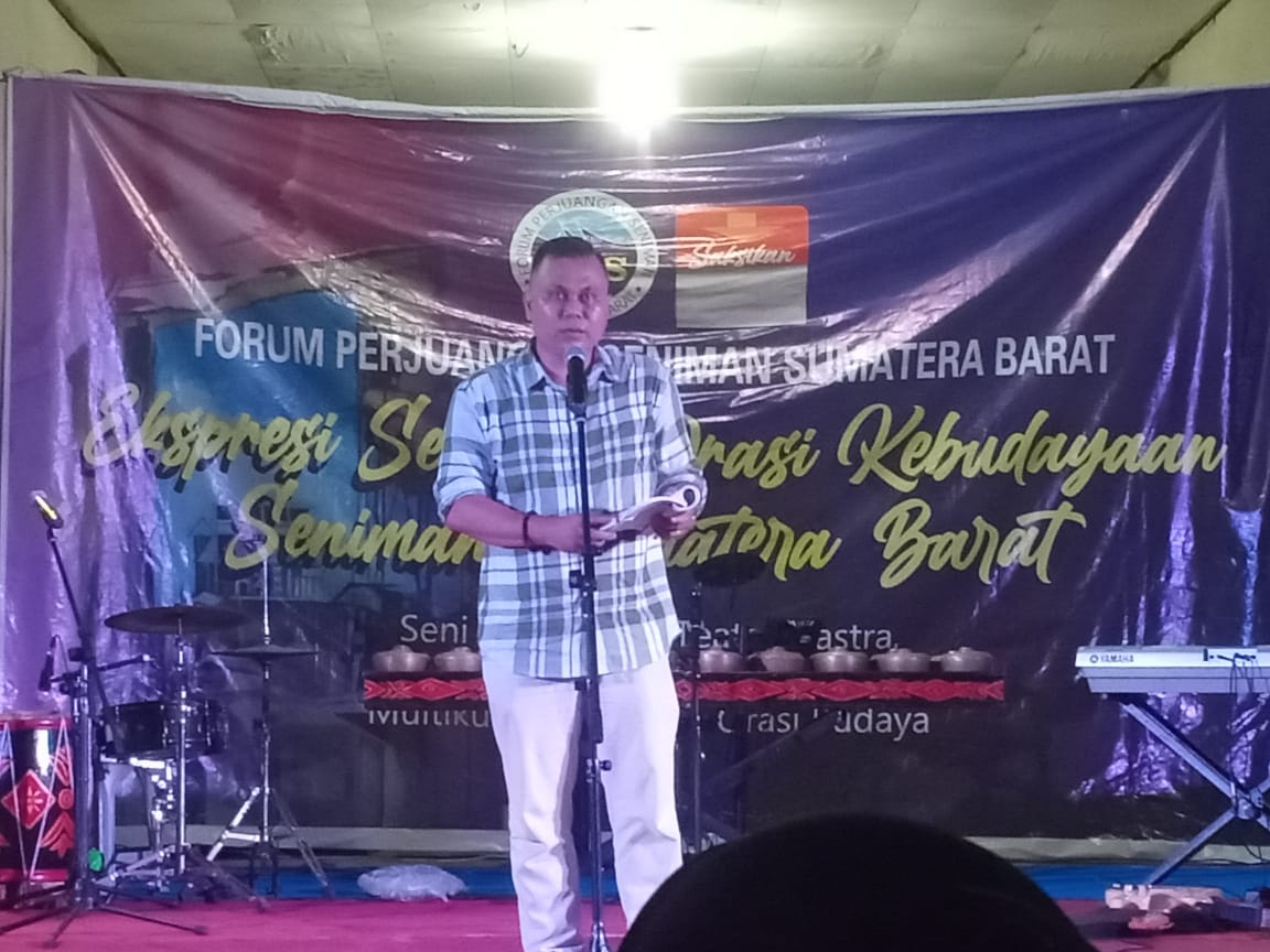 Hal itu diungkapkan Dosen Fakultas Ilmu Sosial Prodi Komunikasi Universitas Negeri Padang Dr. Mohammad Isa Gautama, M.Si, pada Panggung Ekspresi dan Orasi Budaya Forum Perjuangan Seniman Sumatera Barat, Sabtu (28/12/2024) malam, di gerbang depan Taman Budaya Sumatera Barat jalan Diponegoro Padang.