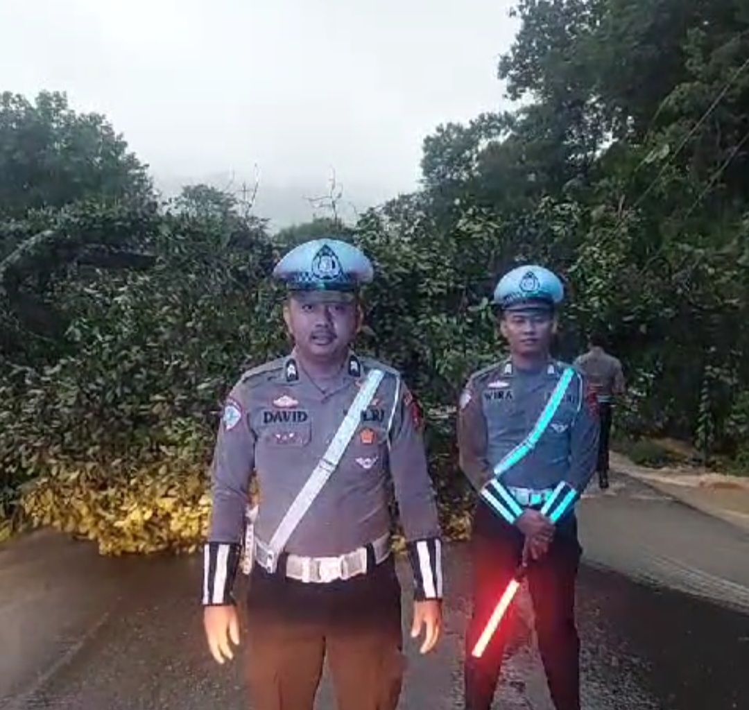 “Arus lalu lintas masih terhenti total karena material longsor cukup besar dan pohon yang tumbang melintang di jalan. Kami telah berkoordinasi dengan dinas terkait, dan alat berat dari Dinas Pekerjaan Umum sedang dalam perjalanan ke lokasi,” ujar Briptu David.