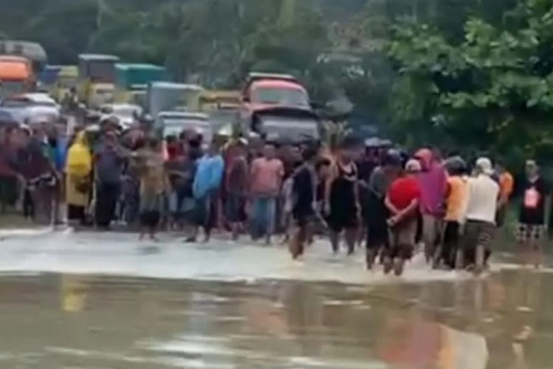 “Tadi sempat bergerak kendaraan, info terbaru tidak jauh dari Simpang Ratu Balqis air sungai juga meluap sehingga menutup bahu jalan. Terkait nama sungainya dmkami masih mengumpulkan informasi,” katanya.