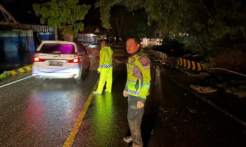 Kapolres Padang Panjang AKBP Kartyana Widyaso Wardoyo Putro,S.I.K,.M.A.P di dampingi Kabag Ops AKP Yaddi Purnama dan Kasat Lantas Iptu Afrizal Sahar meninjau langsung ke lokasi banjir yang menutupi akses jalan tersebut pada jam 16.30 Wib.
