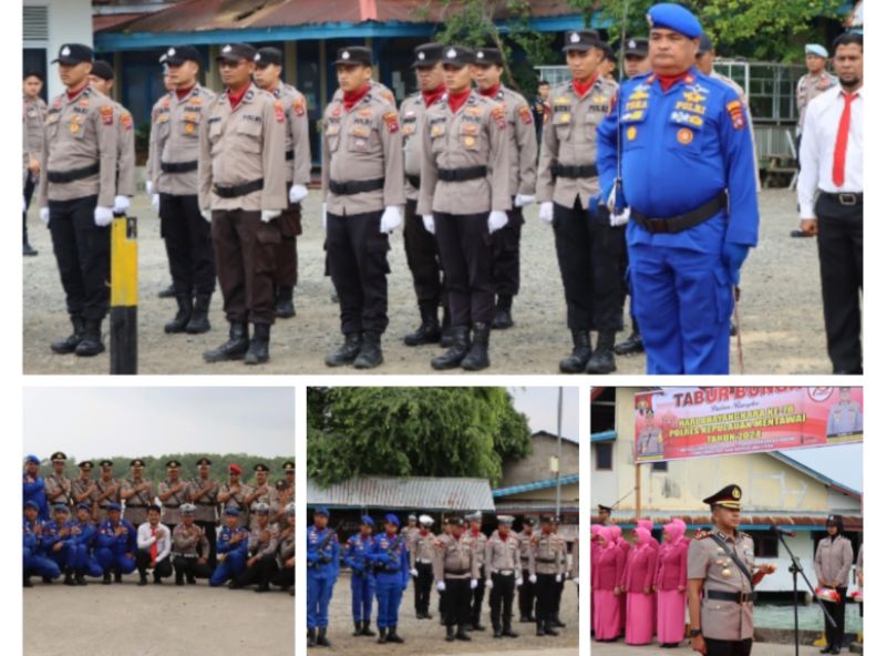 Tabur bunga yang dilaksanakan dalam rangka peringatan Hari Bahyangkara ke-78 dipimpin langsung Kapolres Mentawai, AKBP RORY RATNO A, S.E.,M.M.,M.Tr Opsla,. Upacara dihadiri Pju Polres,Personil dan Bhayangkari Cab kep Mentawai.