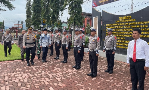 Minangkabaunews.com, Lubuk Sikaping,- Kapolres Pasaman AKBP Yudho Huntoro pimpin upacara apel bersama Gelar Pasukan Operasi Lilin Singgalang Tahun 2023 dalam rangka pengamanan libur Natal 2023 dan tahun baru 2024, di halaman Mapolres setempat, kamis (23/12/23).