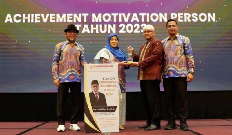 MINANGKABAUNEWS.COM,PADANG — Kepala Dinas Kominfo Kota Padang Panjang, Drs. Ampera, S.H, M.Si dinobatkan menjadi Tokoh Keterbukaan Informasi Publik yang ditandai dengan penghargaan Achievement Motivation Person dari Komisi Informasi (KI) Sumbar.