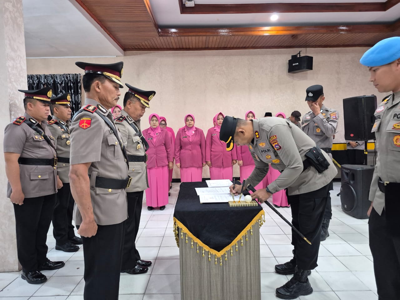 Upacara Sertijab turut dihadiri pejabat utama Polres, para perwira, personel, serta Bhayangkari. (Edi Fatra/ril).