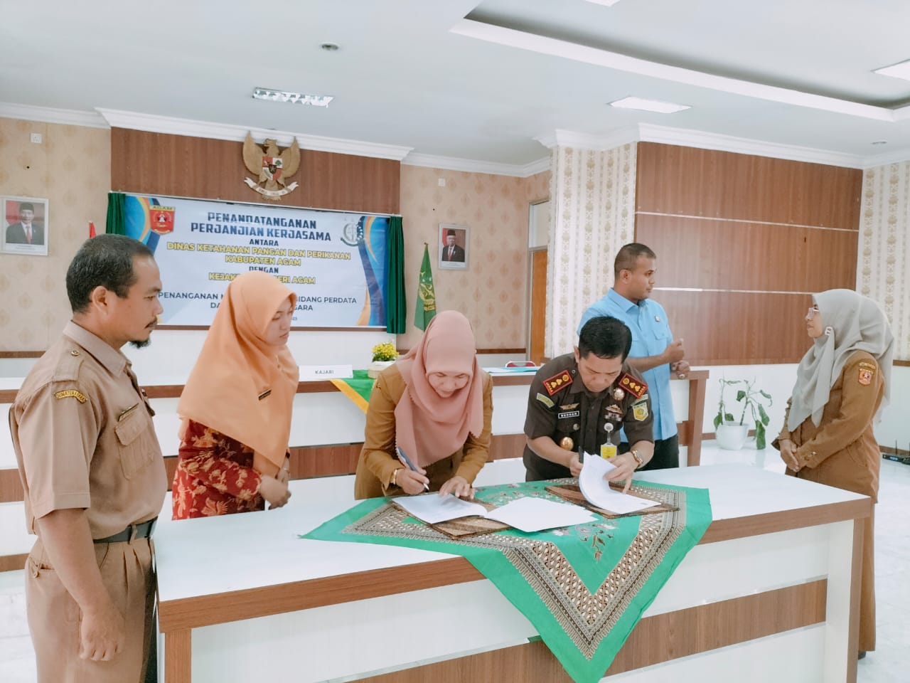 Penandatanganan perjanjian tersebut dilaksanakan di Aula Kejaksaan Negeri Agam di Padang Baru Lubuk Basung yang dilakukan antara Kepala DKPP, Rosva Deswira dengan Kepala Kejaksaan Negeri Agam, Burhan, Selasa, (3/10/2023).