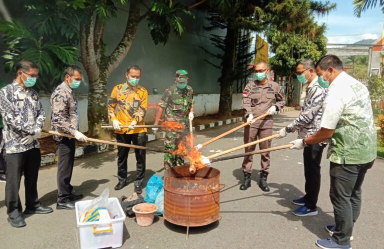 Pasaman, Minangkabaunews.com – Kejaksaan Negeri Pasaman musnahkan barang bukti perkara tindak pidana umum yang telah memiliki kekuatan hukum tetap (Inkracht) tahun 2024 di halaman kantor Kejaksaan Negeri Pasaman, Kamis (18/07/2024)