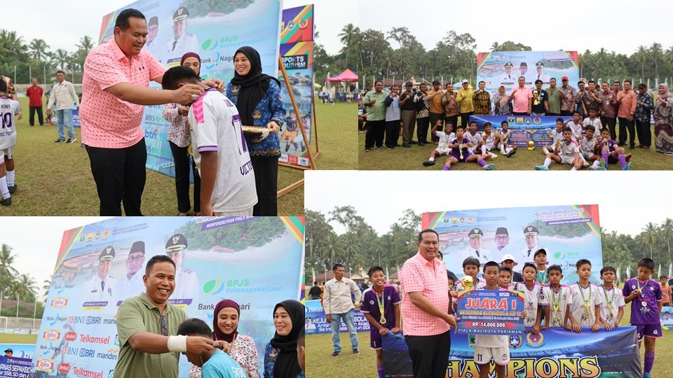“Kejurnas KU-12 ini melaksanakan 268 pertandingan yang dimulai dari Tanggal 7 sampai 9 Oktober 2025. Tidak hanya memilih empat juara, pada kejurnas ini, kita juga memberikan trophy dan medali serta uang pembinaan kepada The Best Player (pemain terbaik) yang diraih oleh nomor punggung 7, Aditiya dari SSB Victory Puma Kota Payakumbuah dan Top Score (pencetak skor terbanya) diraih oleh nomor punggung 30, Alif Grancelo Asegaf dari SSB Sungai Buluah, Kecamatan Batang Anai, Kabupaten Padang Pariaman dengan mencetak gol selama pertandingan sebanyak 14 gol, “ jelasnya.
