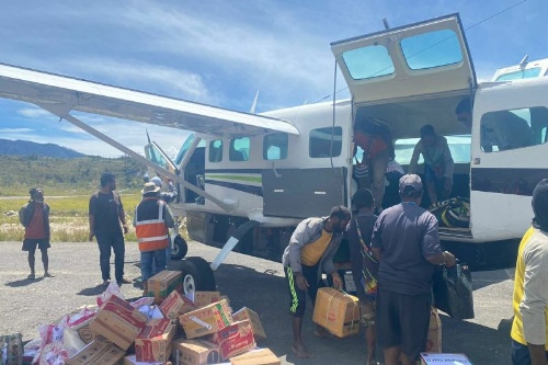 Sebanyak 500 kilogram bantuan tersebut diangkut dengan pesawat milik PT Smart Cakrawala Aviation pada Sabtu ke Distrik Agandugume melalui Bandara Sinak atas alasan keamanan.