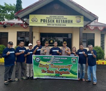 Riswan Jaya, Ketua FORWAS didampingi Hermam Rante, Sekretaris FORWAS, dan Irda Lili, Bendahara FORWAS, Zulfikar Hendri, Waka Bid organisasi, Yasril Yakub, Waka Bidang Hubungan Lembaga/Humas, dan Albetra, Waka Bidang Kesra, beserta Dewan Penasehat FORWAS, Syamsuardi Hasan dan Yemrizon Dt. penghulu Sati, menyampaikan ucapan terima kasih kepada Iptu Khalid Wahyudi, SH, Kapolsek Ketahun atas sambutan dan kesediaannya menerima kunjungan Forum Wartawan Solok di kantornya di Kecamatan Ketahun.